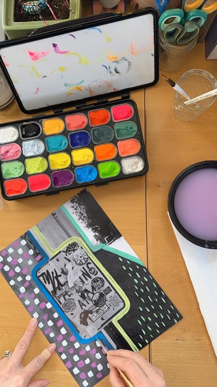 The photographs serve as a fragment of our travels and shared experiences, an incomplete, isolated part of the whole. The mixed media serves as a reflection of the emotions, energy and spirit in these moments.