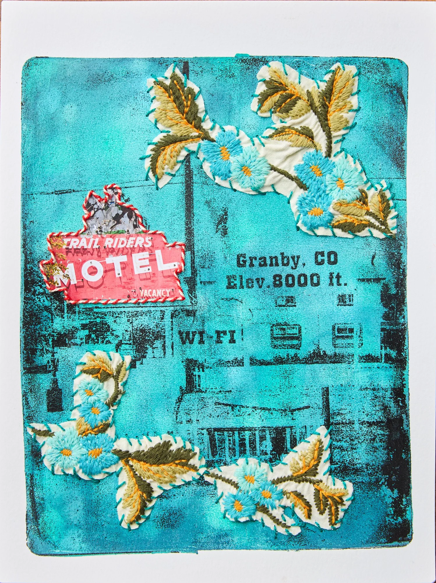 This series is a recollection of experiences in collaboration with my favorite travel partner and husband, Joe Crimmings, and includes his beautiful photographs as the basis of my inspiration and the canvas for my exploration.